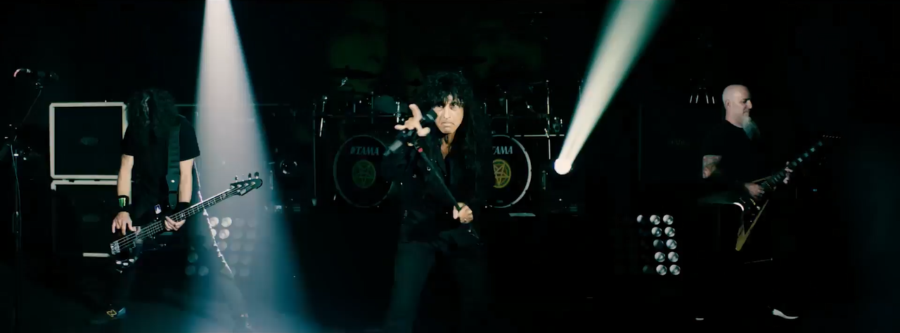 Dei riflettori particolari con le pagine dei fumetti del Giudice Dredd vengono puntati sui componenti del gruppo, annunciando così